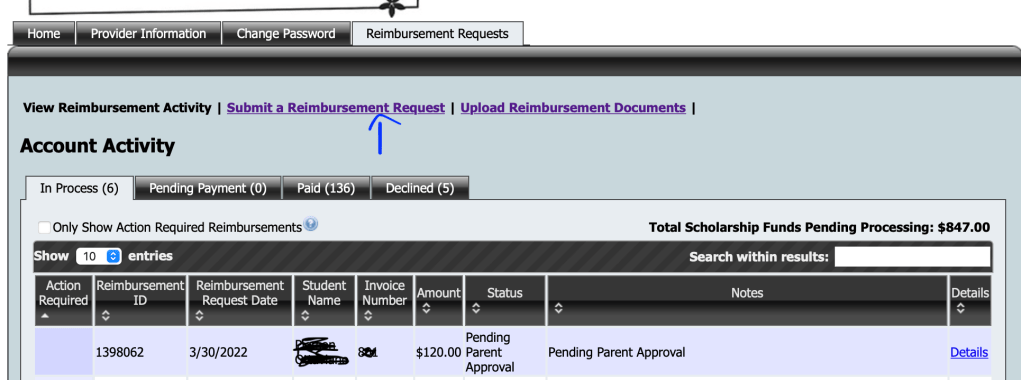 If your tutor is already a DPP, all the parent has to do is approve the reimbursement request in his/her account under the “Approve Provider Reimbursement” tab on the “Account Activity” page.