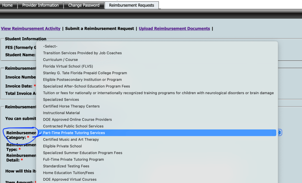 - After the service(s) are rendered (can be weekly, monthly, whichever fits your schedule), submit the reimbursement on the FES Provider site (see samples). Note: You will need the student’s FES number.