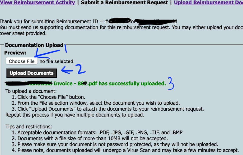 - Payment method noted on the invoice – if it is not, the recipient will need to submit a bank or credit card statement proving payment