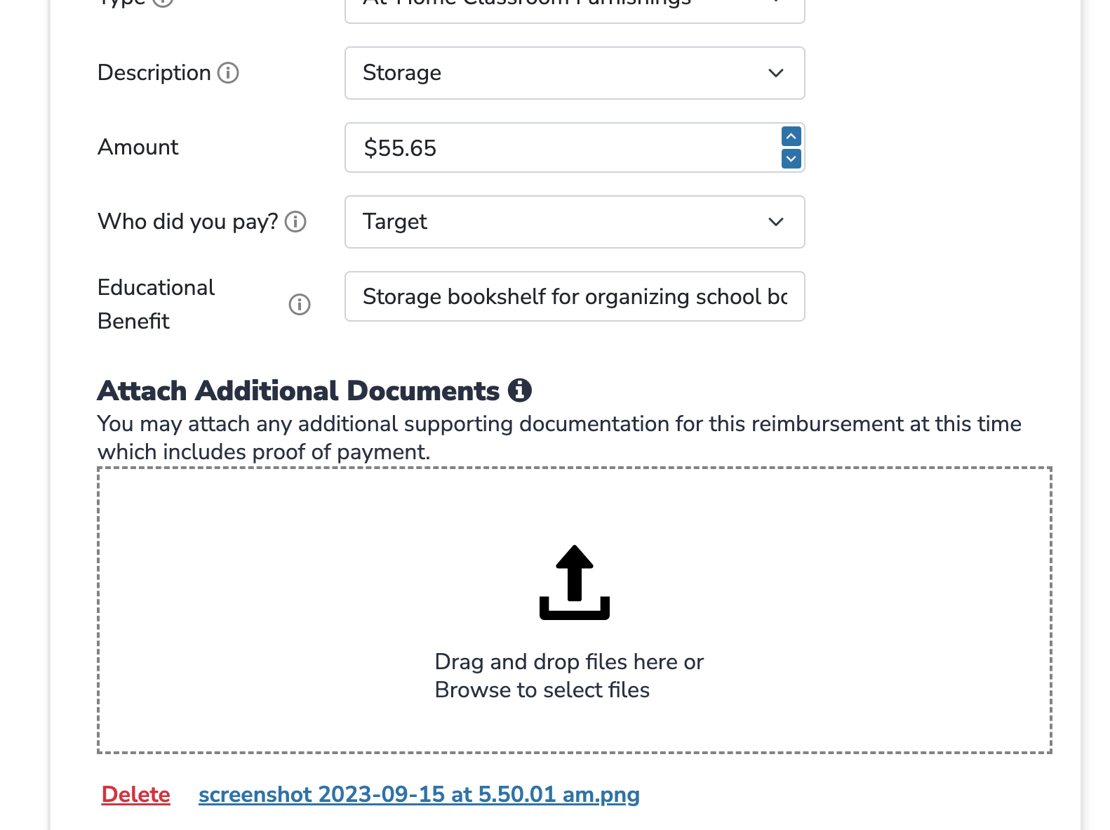 If the original invoice does not have proof of payment, child’s name, or date, you will want to upload a picture of your bank/CC/Paypal account detailing the transaction. I personally include this on every reimbursement to prevent holds. I’ve had reimbursements put on hold for minor misspellings and missing dates.