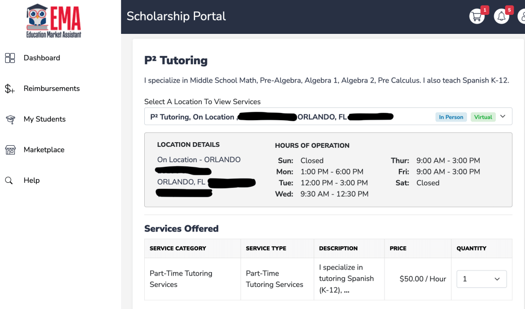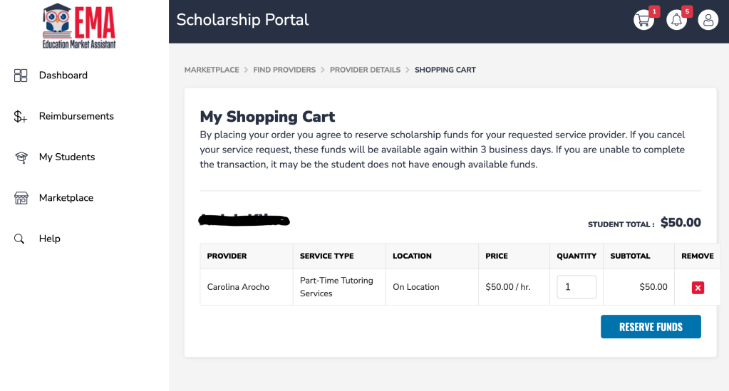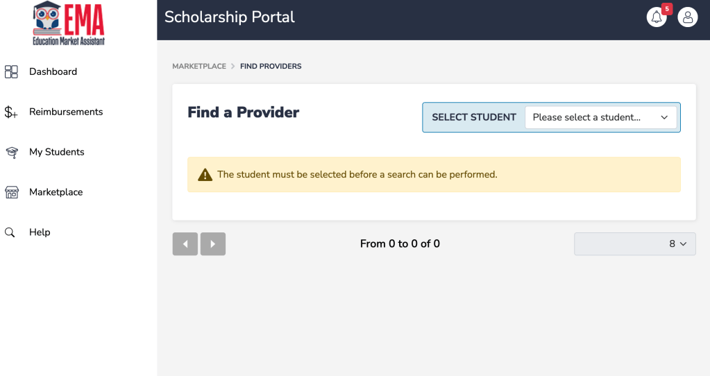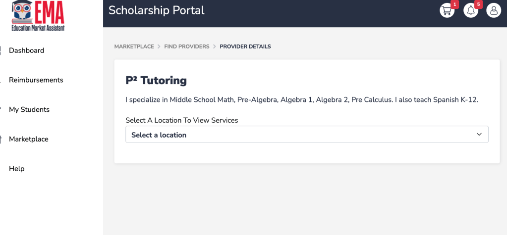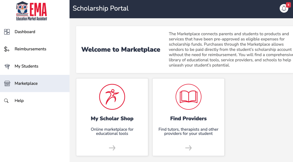 Step 2: Click on Marketplace for My Scholar Shop and Find Providers.