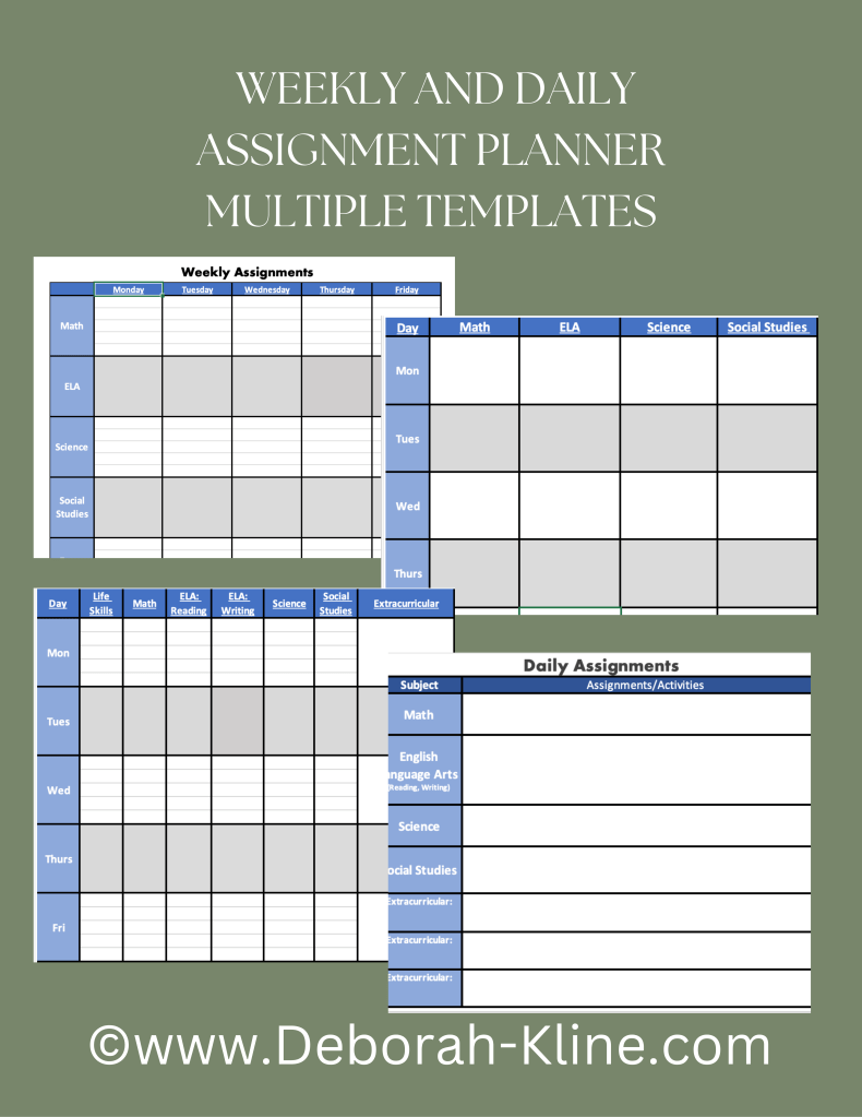 Resource Store Tools designed to simplify and organize your home education program! Homeschool Annual Progress Planner (PDF) FREE Printable Weekly and Daily Assignment Planner Templates (PDF) $1.99 Annual Progress Planner Fillable Spreadsheet (XLXS) $2.99 Customizable Weekly Assignments and Activities Template (XLSX) $1.99 Share this: Share on X (Opens in new window) X Share on Facebook (Opens in new window) Facebook Like Loading...